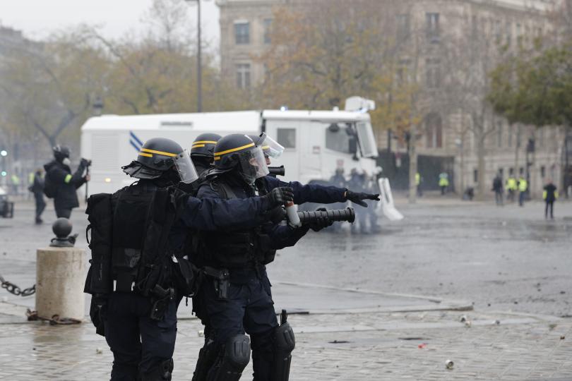 Сблъсъци в центъра на Париж. Полицията употребява сълзотворен газ против протестиращите от по този начин нареченото придвижване на „ жълтите жилетки ”, които недоволстват от високите цени на горивата, оповестява „ Рашъ Тудей’. Съобщава се и за минимум двама арестувани стачкуващи край Триумфалната арка.