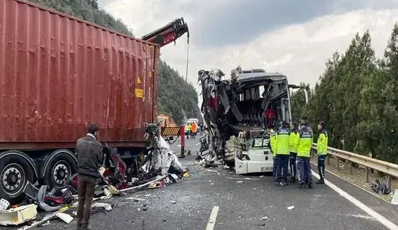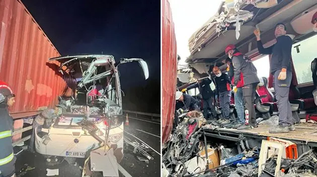 По информация на държавната организация „ Анадолу “ междуградски рейс се е врязал в камион, който бил спрял спешно на пътя след пръсване на гума. Ударът е станал малко преди разсъмване.