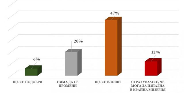Резултатите от проучването демонстрират, че резултатите от изборите ще се дефинират не толкоз от предизборната политическа борба сред партиите, а от икономическите разтърсвания в обществото. Наблюдаваме извънредно засилена тревога във връзка с персоналното материално богатство, вероятностите пред страната и страхове за идната зима и непосредственото бъдеще (12 % от запитаните се притесняват не от обедняване, а от опцията да изпаднат в последна мизерия).