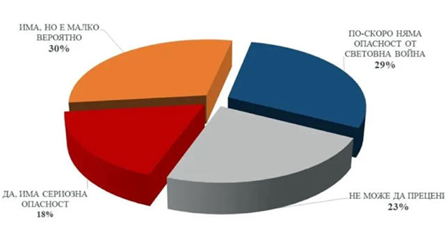 Заедно с това нарастват и опасенията от война в директно бъдеще. Само за три седмици броят на хората смятащи, че има огромна заплаха от война в близко бъдеще се е нараснал с 9 %.