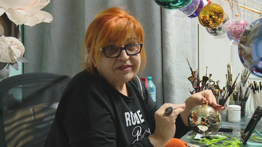 Саша Игнатова : „ Трябва доста деликатно да се пипа, тъй като са доста нежни. Първо поставям основа, тъй като боята се пързаля по стъклото – върша основа с бяла багра. После, когато изсъхне, стартирам да рисувам от горната страна. Някои ги поръсваме с прашец – магически прашец. Правим пейзажи от София, от България, коледни пейзажчета, които са най-търсените. Търсят се, естествено, и с коледни претекстове – Дядо Коледа, зайчета. Тази година, да вземем за пример, споделиха, че е „ шоколадова Коледа “ и се търсят повече кафяви тонове. Прозрачните топки също са доста съвременни, само че са по-трудни за декориране. “