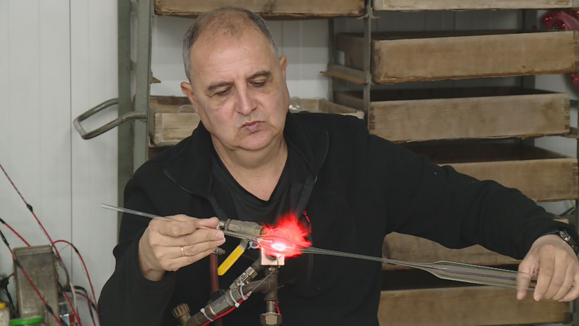 За да се изработят играчките, първо стъклото се нагрява, а по-късно посредством издуване с уста придобива избрана форма, споделя Костадин.
