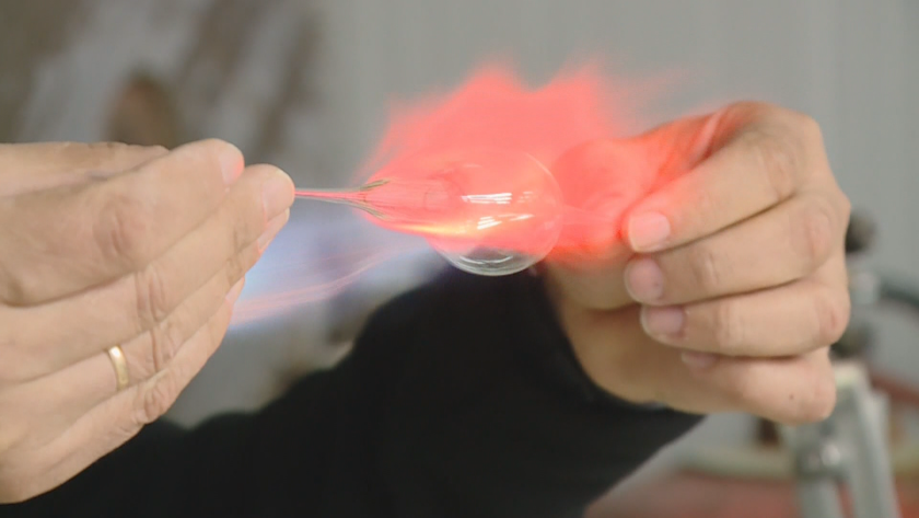 Костадин Калоянов : „ За изработката се употребяват специфични стъклени тръби, които внасяме от Германия. Те са със специфичен състав, с цел да може да се работи с тях при ниски температури. Температурата е някъде от порядъка на към 1000 градуса. При тази температура стъклото може да се обработва посредством издуване и свободно придвижване на ръката. Разбира се, могат да се употребяват и огнеустойчиви матрици, с цел да се реализират по-разнообразни неротационни форми. А главно ротационните се вършат посредством свободно придвижване на ръката. “