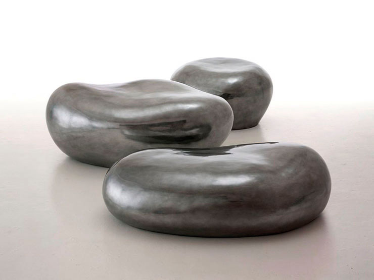 Декорацията за дома се въодушевява от тази тема и срещаме все по-често обекти със сурови, несъвършени повърхности, като че ли основани от парчета на астероид.