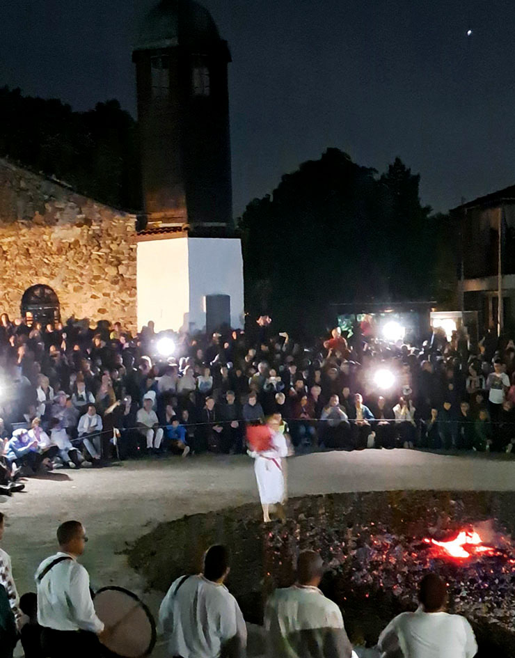 Ей в този момент ще се случи, веднага. И след това босите крайници са върху въглените, влизат един, двама, шестима, траекториите на екстаза им просветват в алено. Държат иконите пред себе си с вярата, че свети Костадин ръси вода пред стъпките им и гаси въглените. Истинските нестинари се познават по това, че краката им не горят, ще ви кажат в Българи. Часове, от време на време и дни преди танца крайниците им ставали студени като змия. И трябвало да влязат в огъня, с цел да се стоплят.Шоу ли е всичко? Един свети Костадин знае. Факт е, че след нестинарите в жаравата влязоха и смелчаци от публиката, много се опариха.