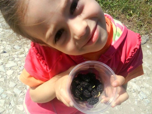 Слънцето най-накрая пада. Каката бере черници от улицата, събира ги в чашка, че ще прави гозба.
