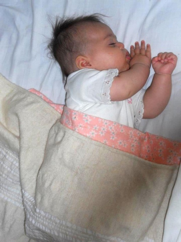 Минутката на мама – баня на двора, зад чаршафа, със слънчева вода. Бебето се е наспало и нетърпеливо желае да суче.