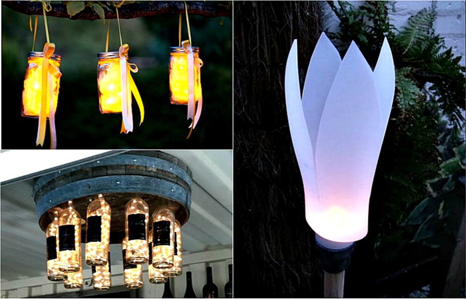 За огромна повърхност би трябвало да създадете изкуствена светлина. За това са подобаващи култивиран лампи, направени от вас. Разбира се, можете да закупите улично осветяване, само че е доста по-интересно да създавате сами истински артикули. До беседката можете да поставите висок фенер за градината и да украсите останалата част с висящи лампи.