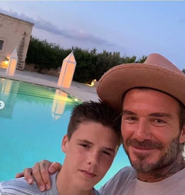 Синовете на някогашния капитан на Англия и влязлата в сполучлива роля на дизайнер Пош Спайс - Ромео, Круз и Бруклин също бяха със своите родители и се забавляваха край басейна.