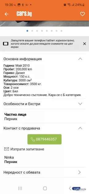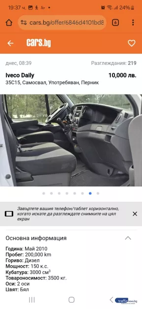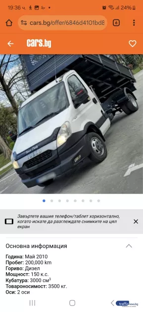 Семейство от Пловдив изгоря с 1200 лв., поради подправени разгласи за продажба на самосвал в профилирания уебсайт cars.bg. Донка Л. описа пред TrafficNews за повтаряща се лъжлива скица с разгласи за продажба на селскостопанските машини, при която жители остават без хиляди левове капаро.
