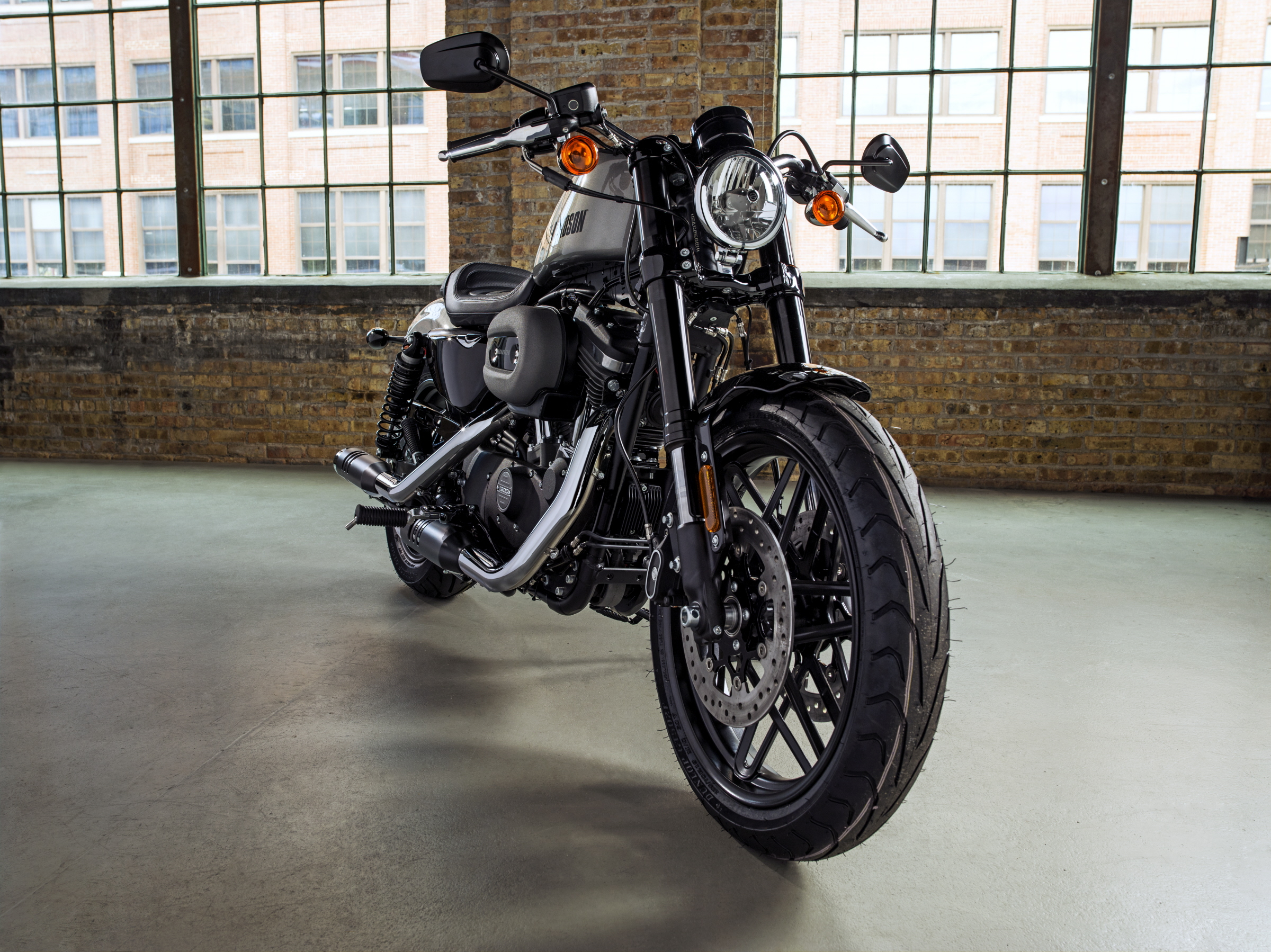 Roadster идва с превъзходния 1200-кубиков Evolution мотор на Harley-Davidson с въздушно изстудяване, прочут със своя прелестен тон и величествен въртящ миг от 96 Нм. Изработен от леки алуминиеви глави и цилиндри и с извънредно дейно изстудяване, Evolution издишва през къси двойни изпускателни тръби с хромирани ауспуси, облечени в черни предпазители. Черни са и страничните огледала, предпазителят на ремъка и към фара, филтърната кутия и капаците на трансмисията.