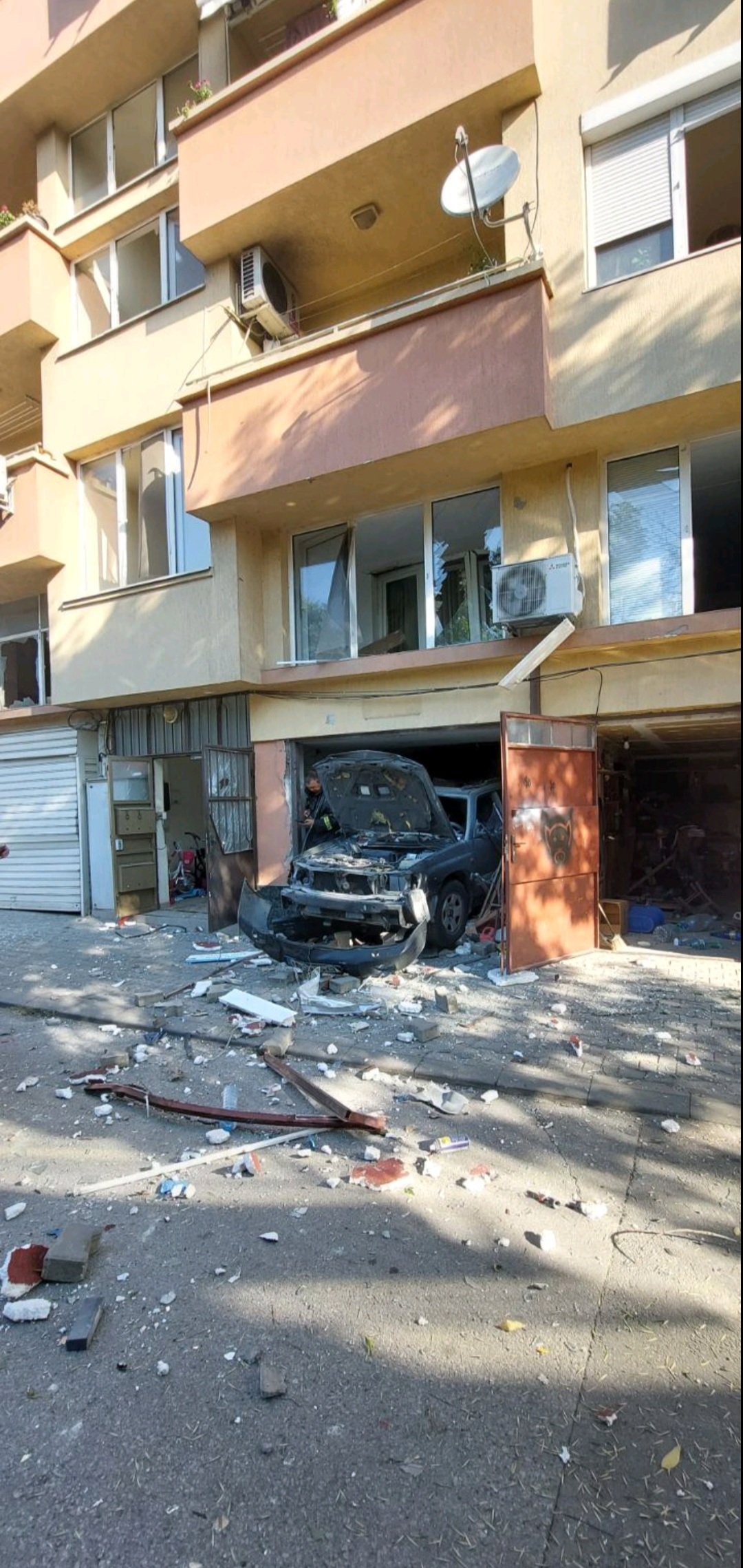 Паркираният в гаража автомобил е изцяло погубен, а от ударната вълна вратите на помещението са отхвръкнали към отсрещна къща и различен автомобил. На място са екипи на полицията, основана е организация за обезопасяване на периметъра към адреса.