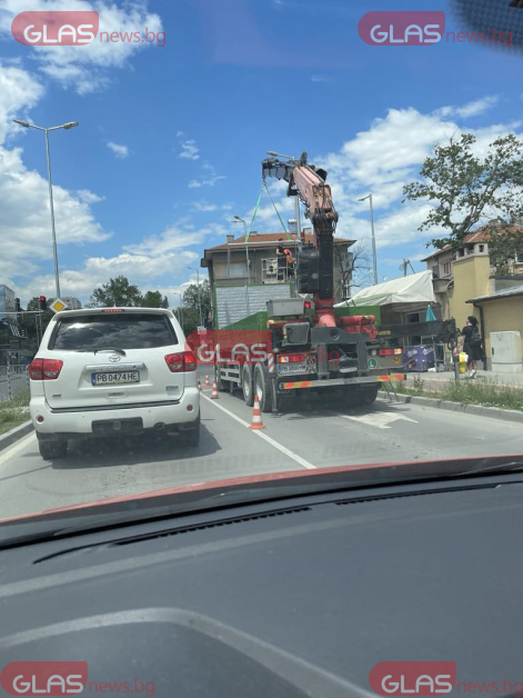 Специализирана техника е заела дясното платно, което принуждава водачите да минават само през лявото.