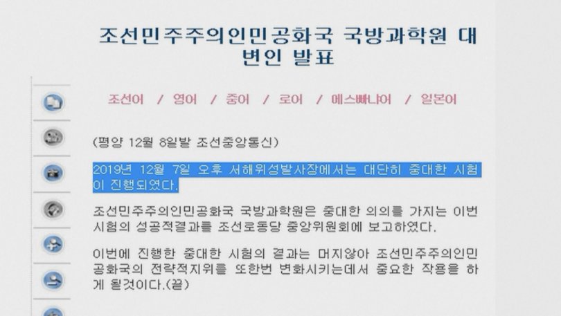 На 8 декември се допуска, че е тестван ракетен мотор. Информацията идва малко преди да приключването на едногодишния период, който Северна Корея даде на Съединените щати, с цел да се откаже от настояването си към Пхенян да се откаже едностранно от нуклеарното разоръжаване.