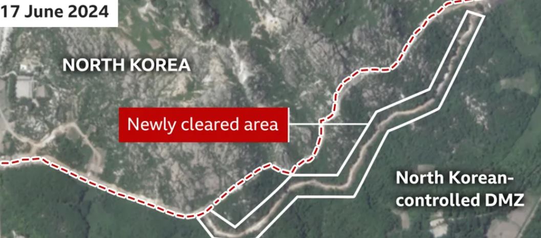 Изображенията, оценени от BBC Verify, също демонстрират, че земята в демилитаризираната зона е била разчистена, което съгласно специалисти може да е нарушаване на дългогодишното помирение с Южна Корея.