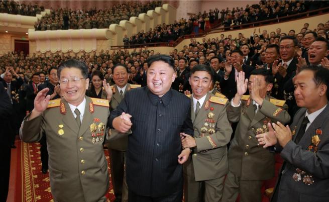На публикуваните от севернокорейската организация фотоси Ким театралничи необятно ухилен в постройката на Народния спектакъл в Пхенян дружно с двама видни нуклеарни учени: Ни Хон-соп, началник на севернокорейския Институт за нуклеарни оръжия, и Хон Сун-му, заместник-завеждащ отдела на Корейската трудова партия за военната промишленост.