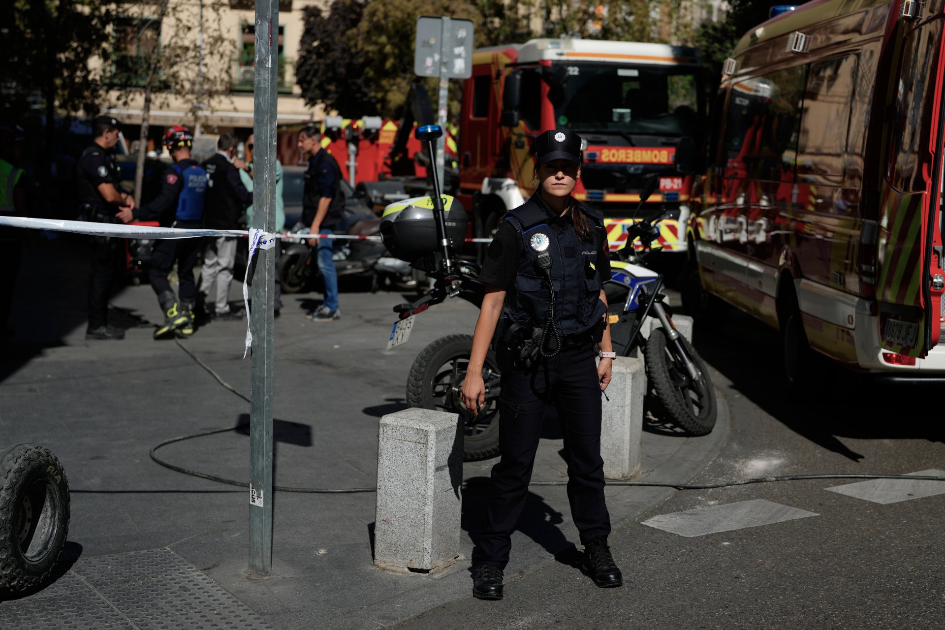 Полицията и пожарникарите са употребявали дронове и кучета с цел да ревизират дали има хора, заклещени вътре в постройката, ситуирана покрай операта и кралския замък в испанската столица.