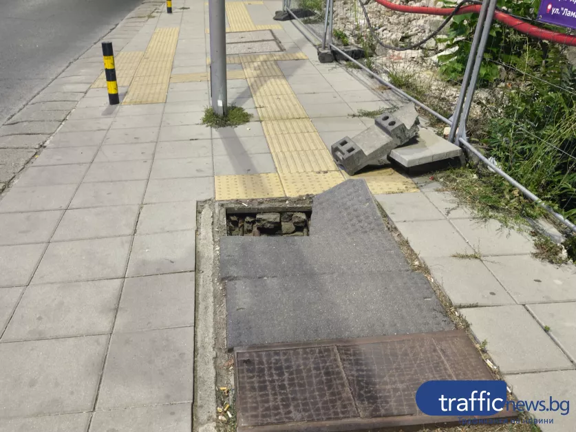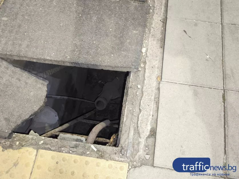 Шахта на многолюден тротоар е с изкъртен похлупак и е евентуално рискова за преминаващите невнимателни пешеходци. Зейналата дупка е до светофара на бул. „ Христо Ботев “ кръговото на Централна гара, алармират читатели на TrafficNews.