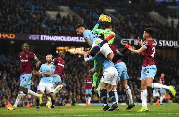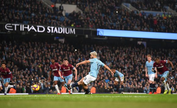 Шампионът Манчестър Сити победи Уест Хам с 1:0 в среща от междинния 28-и кръг в Премиър лийг. Серхио Агуеро означи единствения гол от дузпа в 59-ата минута. Отборът на Джосеп Гуардиола игра мощно, сътвори обилие от положения, само че пропуските на нападателите и блестящите намеси на Лукаш Фабиански резервираха интригата до самия завършек на дуела.