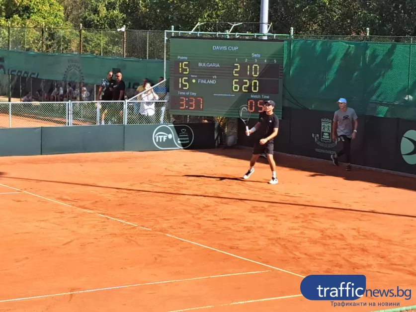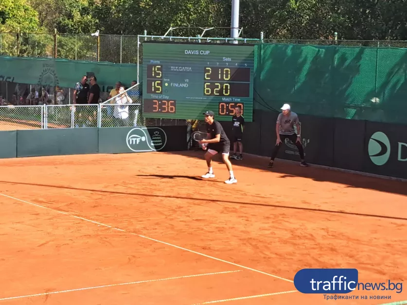 Така България и Финландия си размениха по една победа през днешния ден и всичко ще се реши на следващия ден. Първият мач е дуелът на двойки от 11:00ч. на кортовете на Търговска колегия Локомотив, а по-късно са срещите на сингъл.