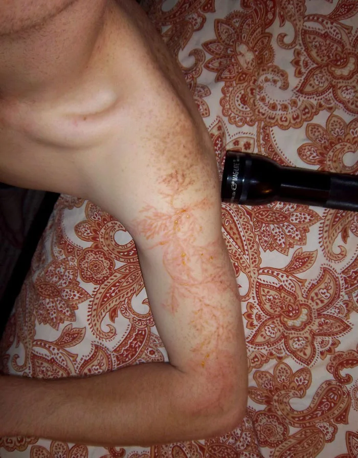 9gag Когато минава през тялото, мълнията изкарва алените кръвни телца от капилярите и ги вкарва в епидермиса.