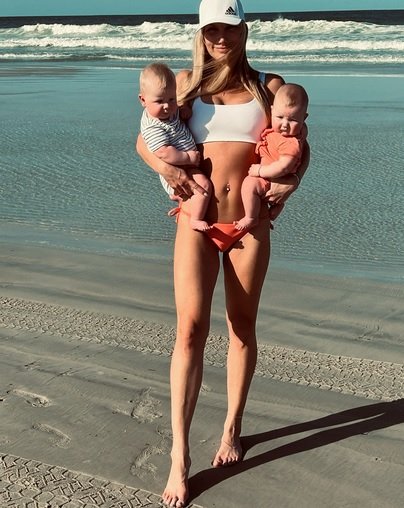 Да, но фотоси в обществените мрежи демонстрират, че мацката е прекарала деня на погребението на плажа с мъжа си Стивън Олекси и новородените им близнаци.