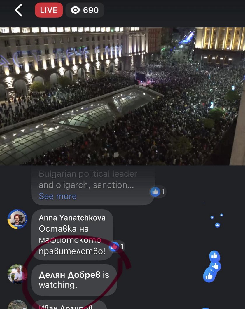 Шефът на Комисията по бюджет и финанси на 51-ия парламент и народен представител от ГЕРБ Делян Добрев е гледал онлайн всеобщия митинг, довел до свалянето на държавното управление на обединението ГЕРБ-БСП-ИТН и водено от Росен Желязков... от пиано бар на метри от гигантската проява, научи извънредно Lupa.bg.