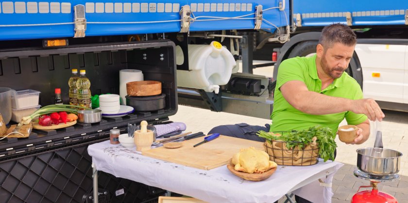 Шест бързи предписания за топла и вкусна храна, които могат да бъдат приготвени единствено с газов котлон даже на паркинг, демонстрира началник Виктор Ангелов особено за професионалните водачи на камиони. Във видеа в обществените мрежи той предлага авторски прочит на познати ястия, който е приспособен особено за живота на колела. Сред предложенията на началник Ангелов е обичайното пиле с ориз, което бързо може да се трансформира и в пиле по китайски, и оризови топки с пиле по модела на италианските „ аранчини “ за комфортно ядене даже в кабината на камиона. Кулинарът потвърждава, че в полеви условия може да се подготвят и образцово чили кон карне от телешка саздърма, спагети „ Болонезе “ и вкусен телешки бургер.