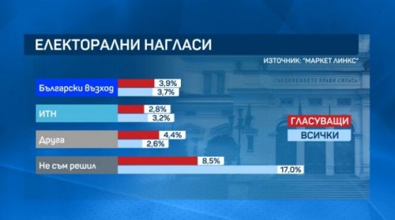 Маркет линкс: 6 партии влизат в парламента. `Възраждане` на стотна от ДБ, а ИТН остава под прага -