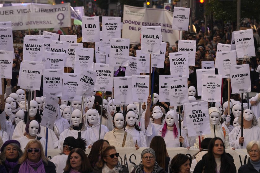 40 демонстрации имаше в Испания. В Мадрид хиляди дами се стекоха в центъра на града и стачкуваха с плакати с имената на жертви на принуждение.
