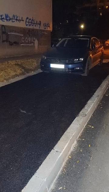 Шофьор от столичния квартал " Люлин 6 " не съумя да дочака асфалта на тротоара да изстине и си резервира паркомясто, споделя столичанин в обява в обществените мрежи.