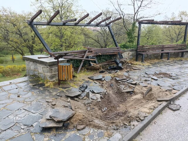 Шофьор провокира тежък случай в Хисаря откакто се вряза в пейки на пешеходна зона в града.