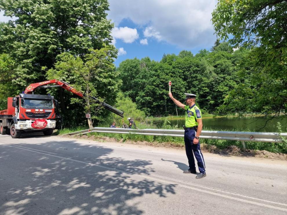 Екип на полицията контролираше придвижването в региона. Служители на Районна работа „ Пожарна сигурност и отбрана на популацията “ реалокираха авариралия автомобил.
