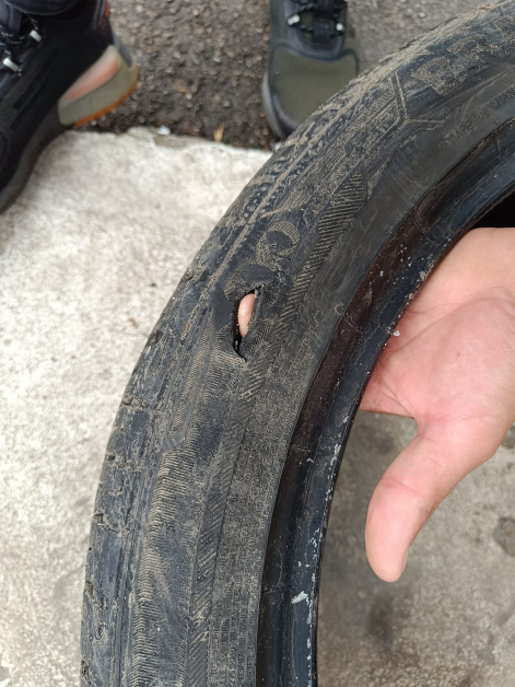 Шофьор се сдобил с дупка на една от гумите си, откакто е минал през огромна душка. За това сигнализира самият той.