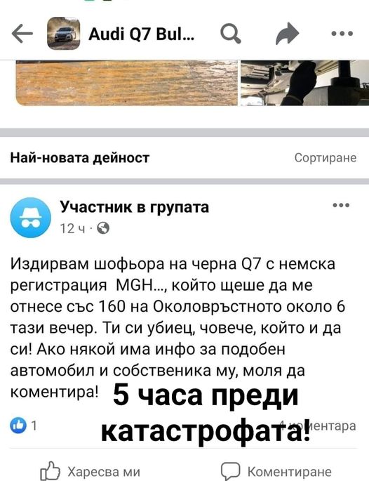 Шофьорът от мелето в София е бил на косъм от различен тежък конфликт единствено пет часа по-рано. Това излиза наяве от обява в група ввъ Facebook.