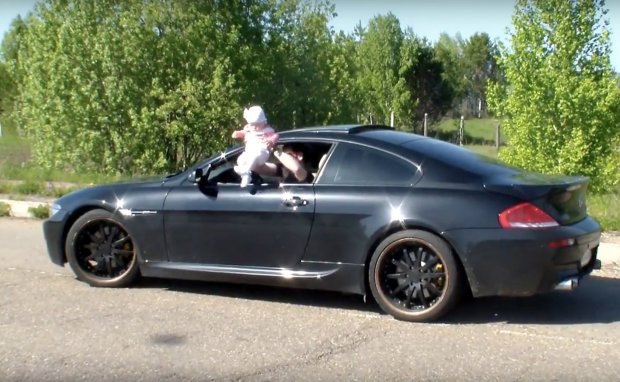 Шокиращи фотоси демонстрират по какъв начин безконтролен татко провесва бебето си от височина за повече лайкове във „ Фейсбук”. Той го провесва и през прозорец на БМВ, като фотосите са оповестени в обществените мрежи. Мъжът даже демонстрира видео на ужасяващите си демонстрации.