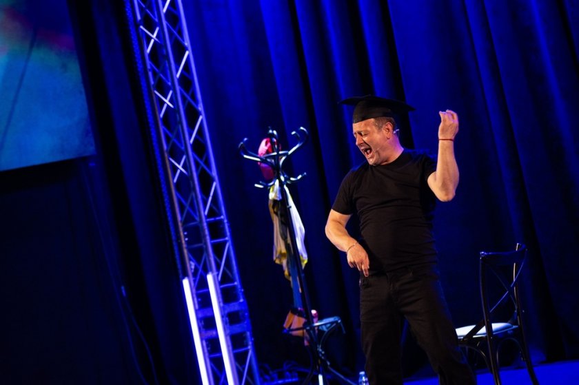 На 28 май бе софийската премиера на моноспектакъл, чиито режисьор е Ивайло Христов, а сценарист е Иван Ангелов. Изпълненията до краен лимит Театър Аrtvent в постройката на Университета по архитектура, строителство и геодезия, изпрати на крайници артиста с продължителни овации.