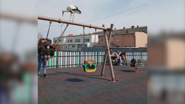 Питомният щъркел се появи за първи път в края на март в двора на детската градина на кв. „ Зора “. После и на площадка за игра. Хората срещат птицата по улиците. „ Целият квартал му се радва, хранят го, гледат го “, споделя Румяна Ангелова.