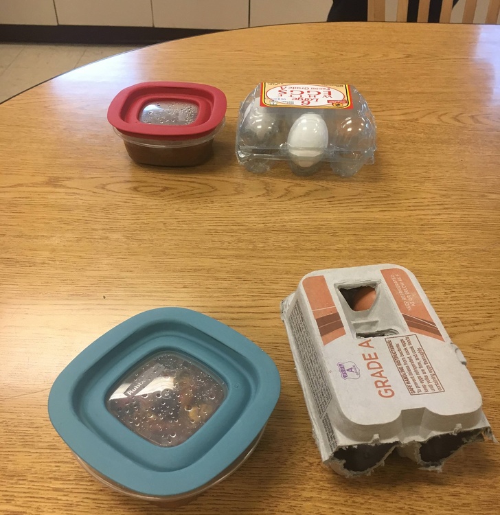 15. Моят сътрудник донесе 3 яйца в опаковка и кутия с храна, които доста наподобяват на моята кутия, и моите три яйца.