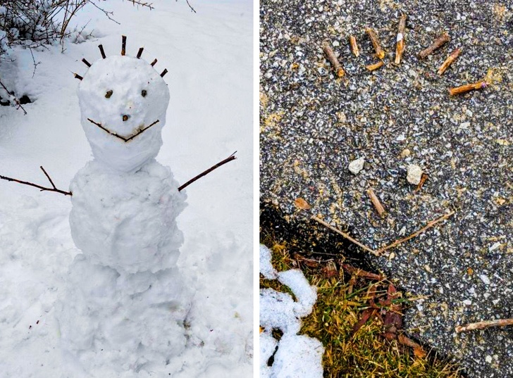 16. Снежният човек се стопи, само че „ лицето “ му остана.