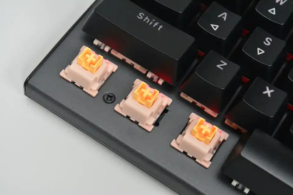 Наред с това розовите суичове са „ меки ” и леки. Разстоянието, което изминават за отчитането на един удар, е 3,3 милиметра – дребна, само че осезаема разлика, тъй като при останалите клавиатури всекидневно е 4 мм. Съответно и чувствителността е по-голяма: розовите реагират на надалеч по-малка мощ на напън.