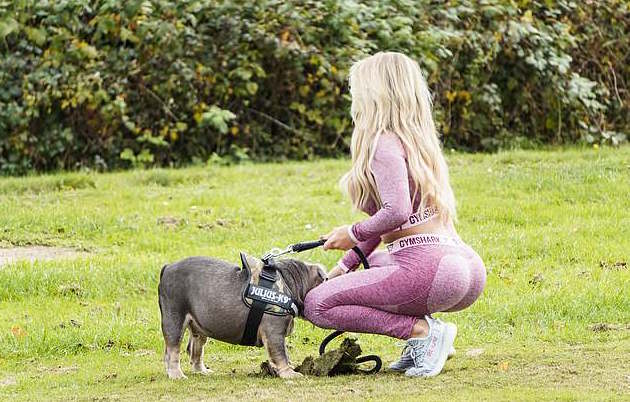 Блондинката провокира възторг с прилепнало по нея розово бюстие и клинче. Компания й правеха гаджето й - футболистът Адам Бъртън, и техните кучета. Разходката беше запечатана от папараците на “Дейли Мейл”.