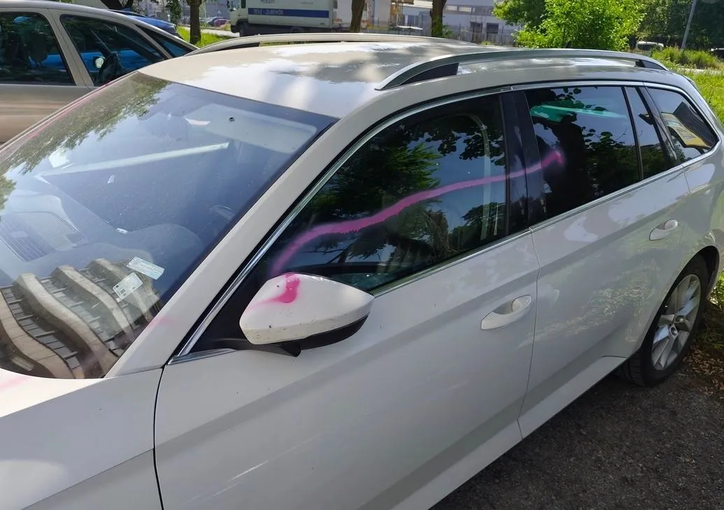 Надраскаха с розов спрей паркирана кола, ще има ли възмездие? СНИМКИ