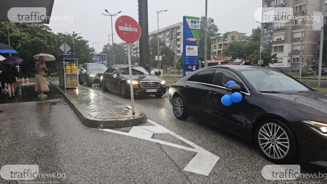 Силен дъжд и шампанско се леят в Пловдив! Възпитаниците на МГ избраха елегантността ВИДЕО