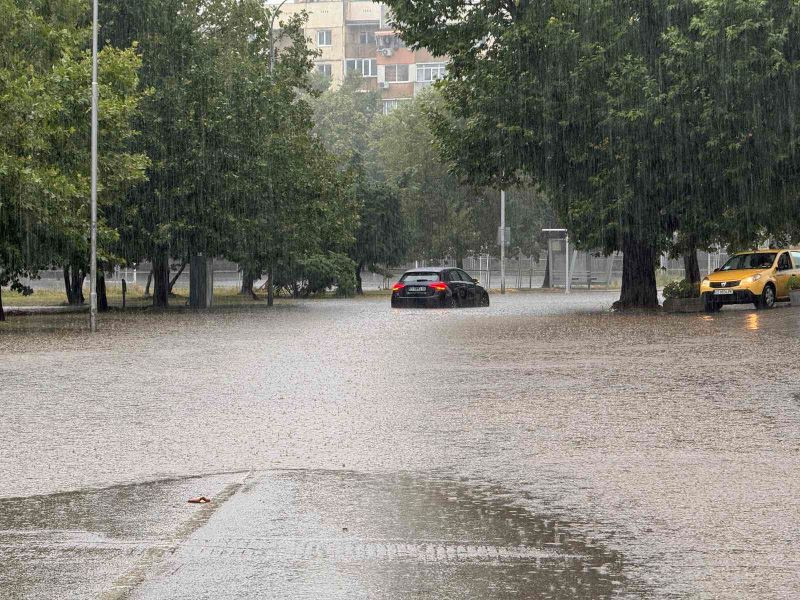 Дъждът, който валя в Казанлък над час, наводни улиците на града. Има паднали дървета от мощния вятър. Към този миг няма данни за потърпевши или нанесени вреди.