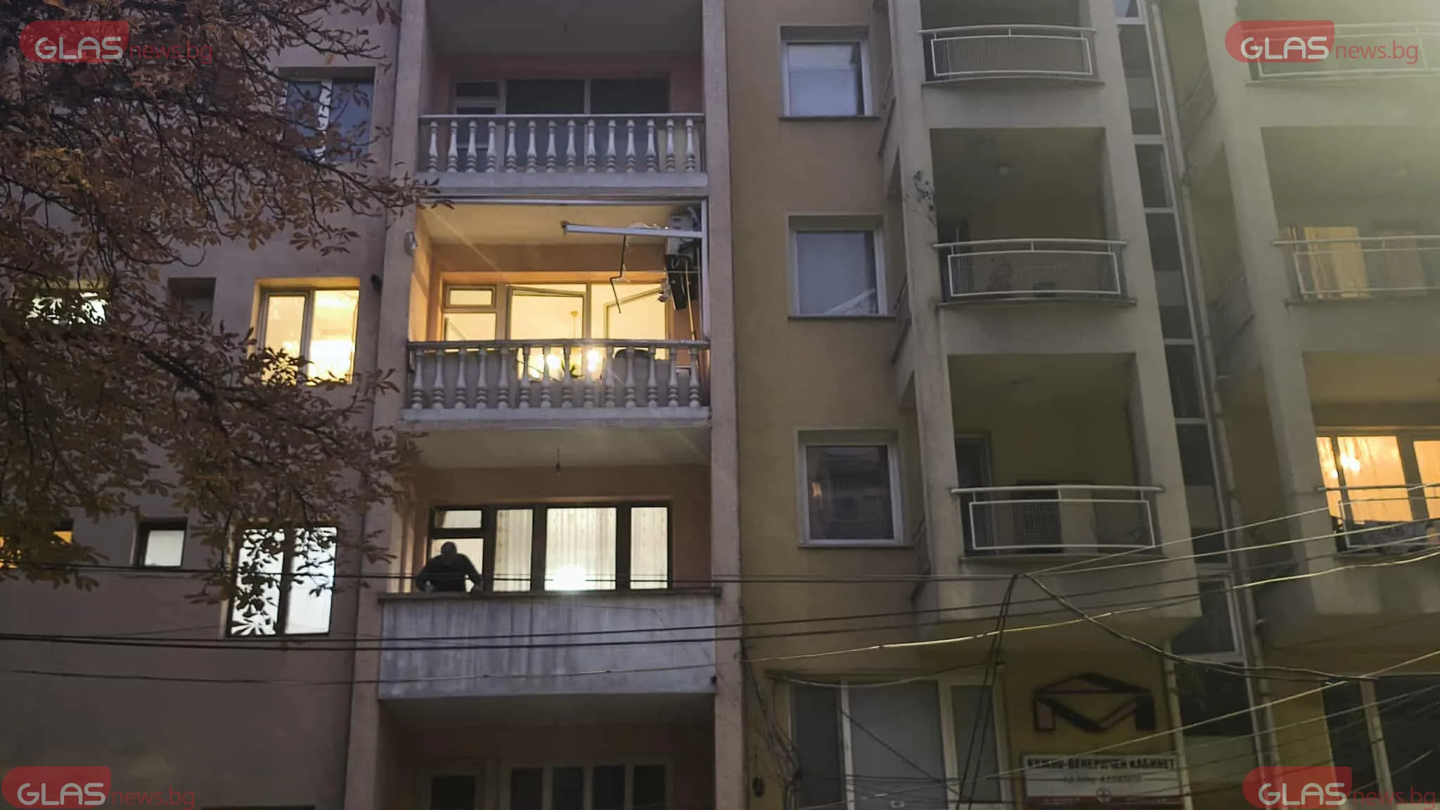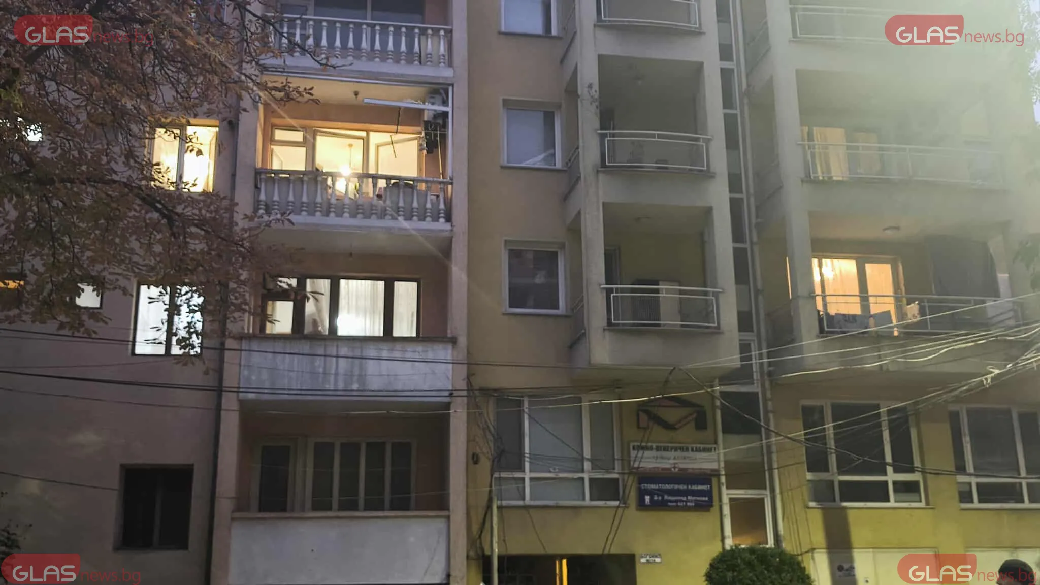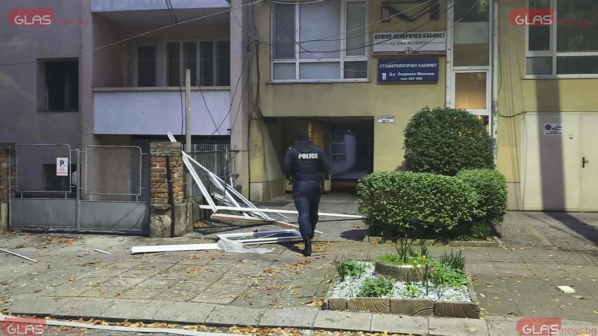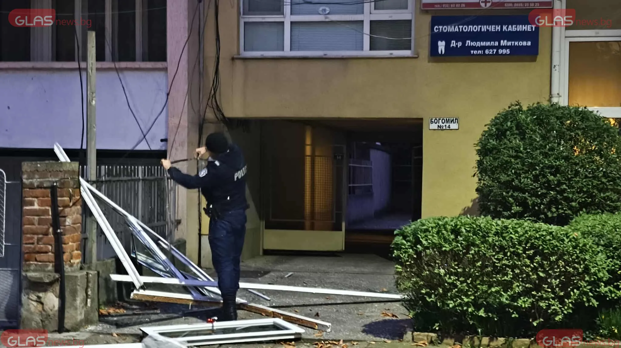 Нанесени са материални шети. От гърмежа остъклението на терасата, на която е била бутилката, е падналo по тротоара.