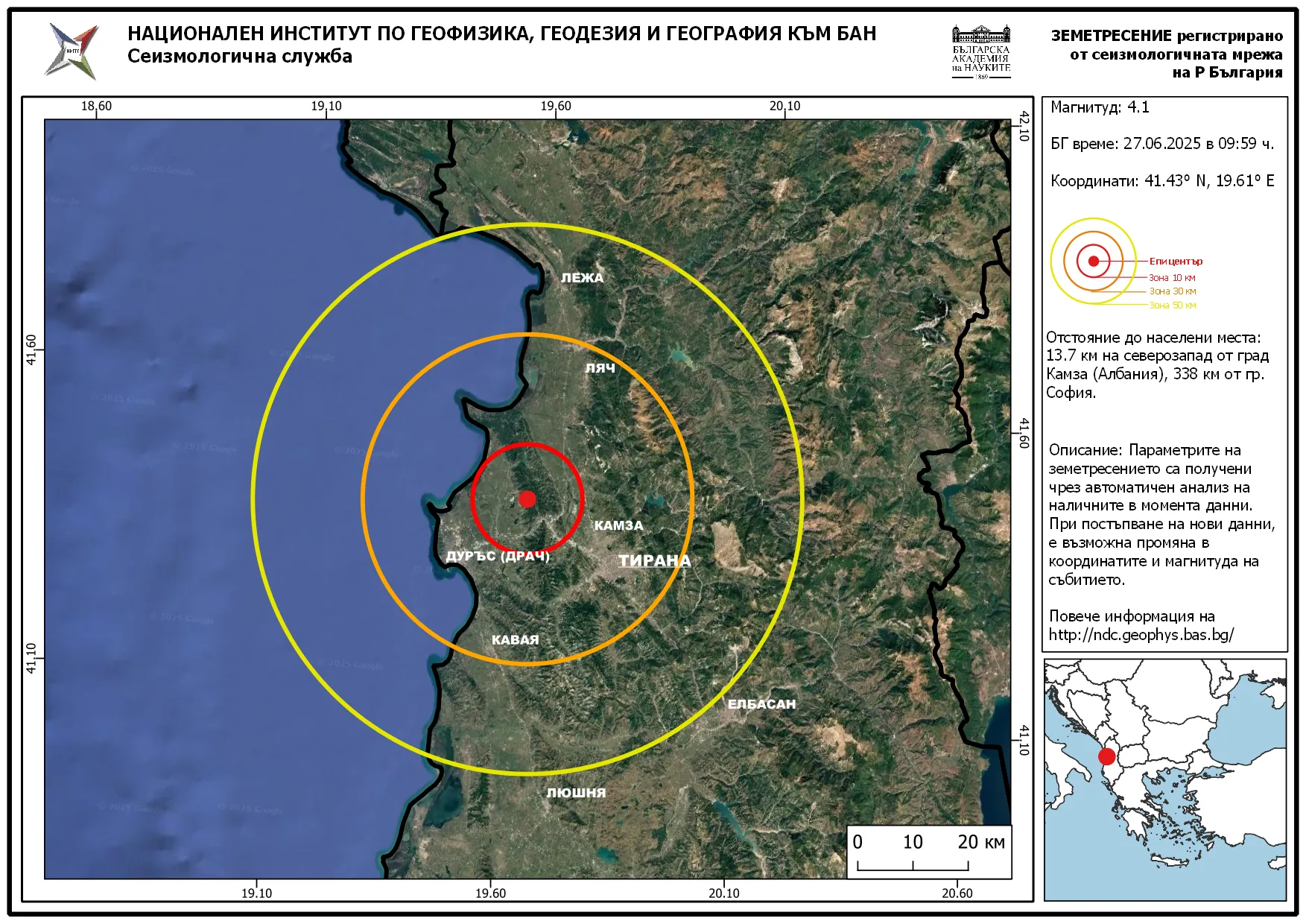 Силен трус с магнитуд 4,1 по Рихтер е регистриран в Албания.