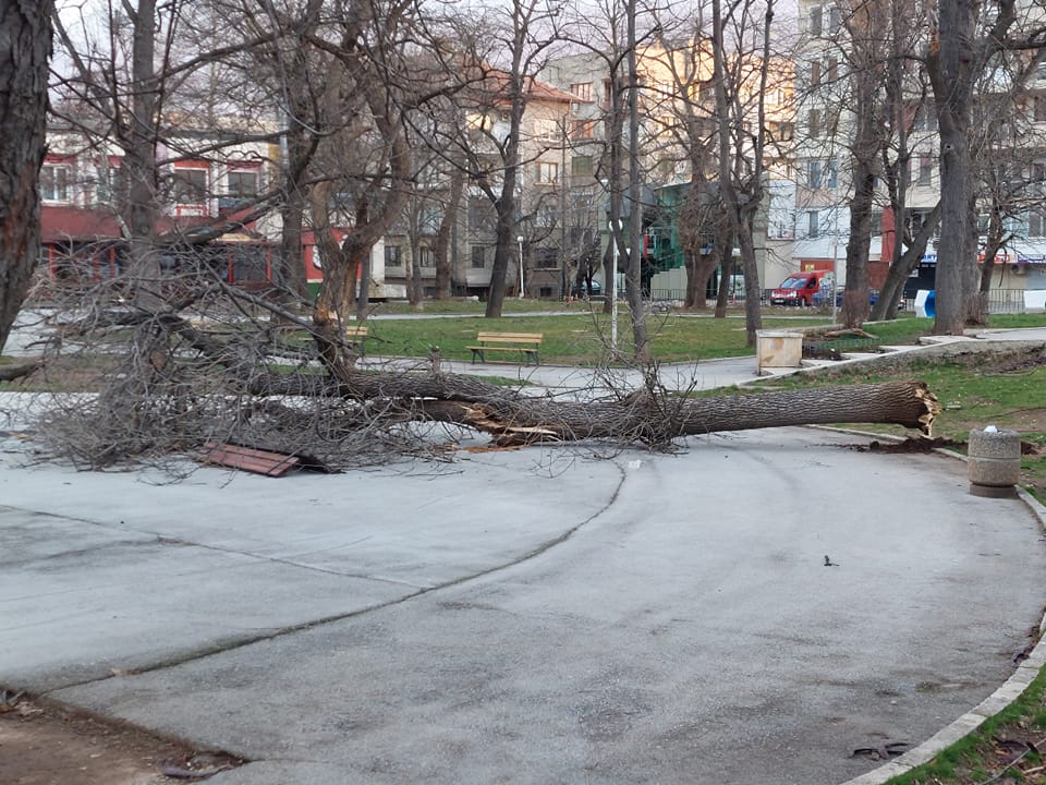 На територията на града не престават сигналите на жители за рискови дървета, паднали билборди, пътни знаци и изолации на жилищни здания.