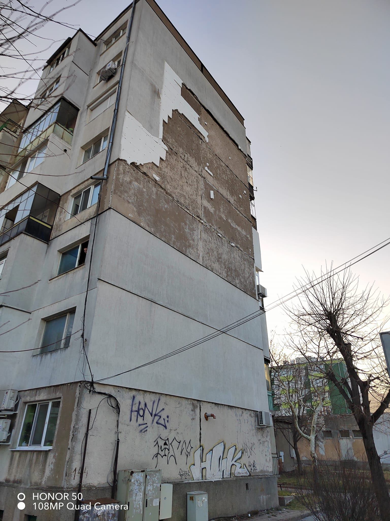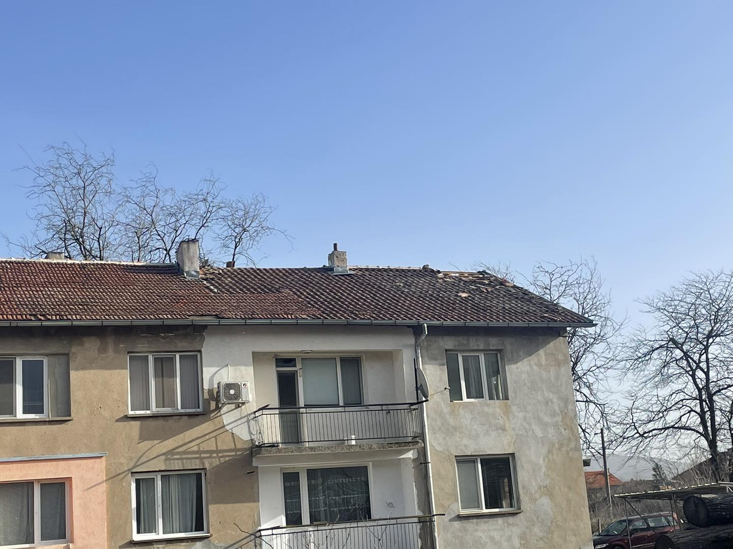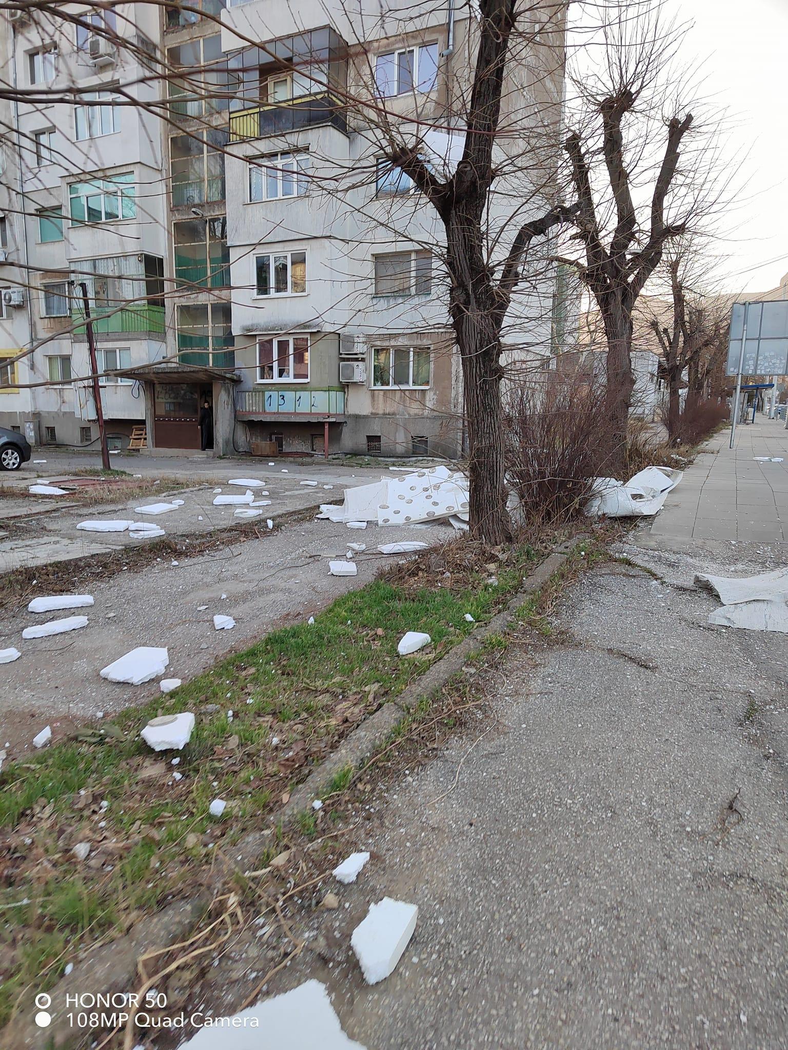 Вятърът събори мазилка на блок във Враца СНИМКИ