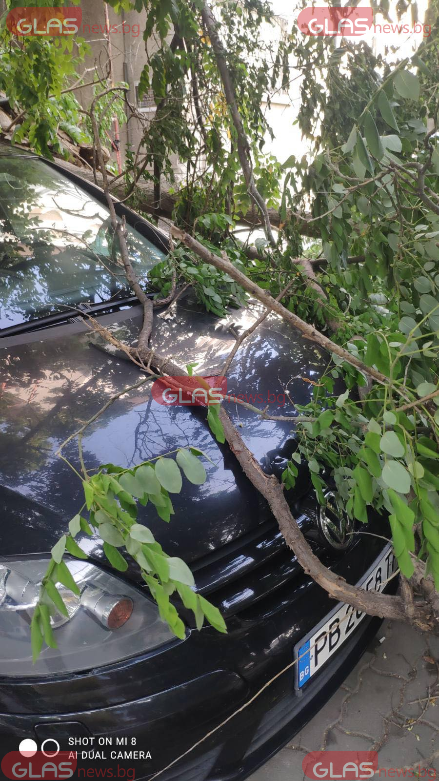 От тераси се разхвърчаха всевъзможни неща, оставени безотговорно от хората, а улиците се извършиха с отпадъци. Най-много пострада обаче автомобил, паркиран на някогашната ул. " Изток " под тепетата. Голям клон от следващото разцепило се дърво от вятъра се стовари върху колата.